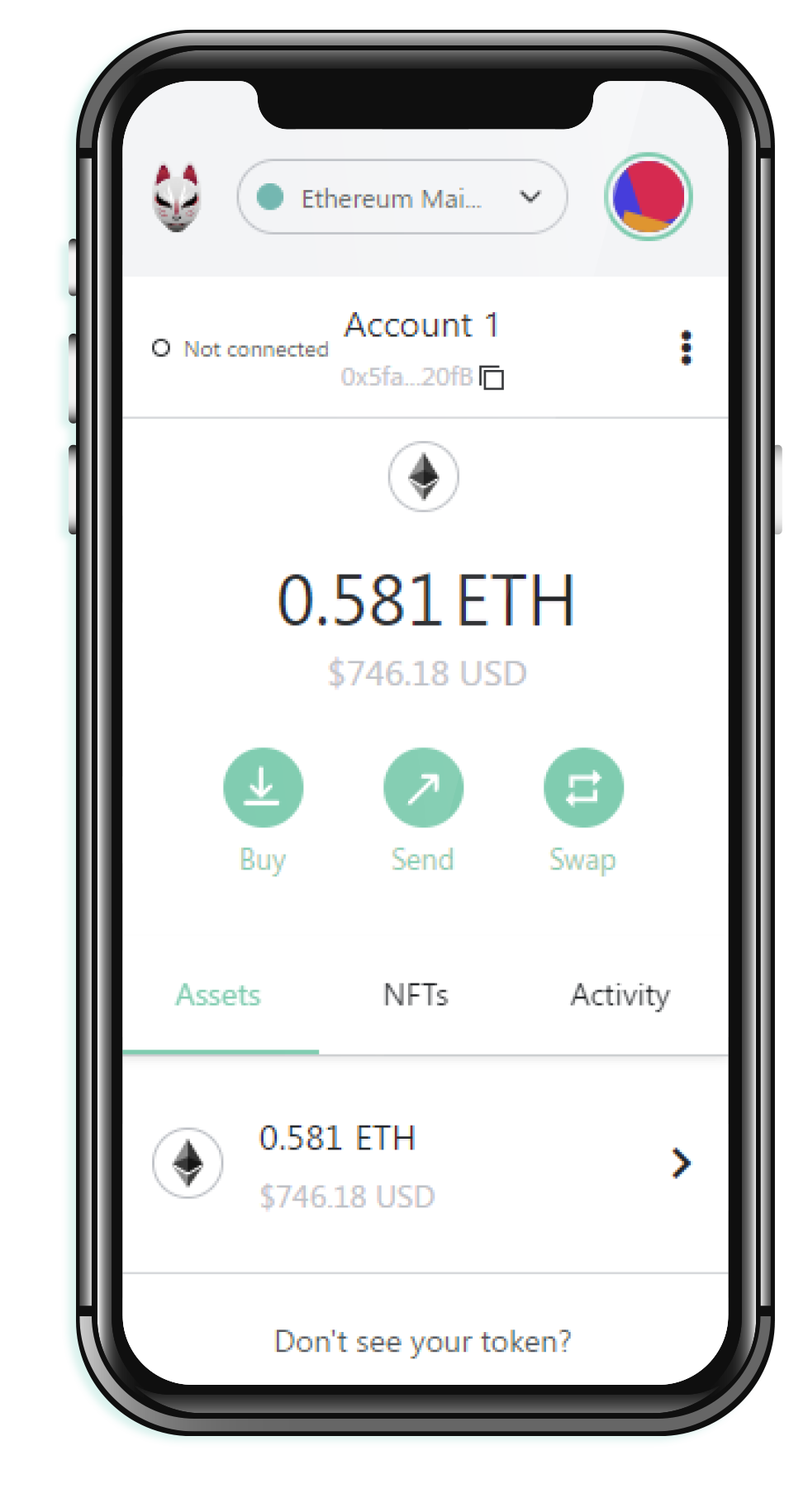 Lower fees than MetaMask with internal swap powered by 0x.
